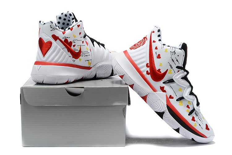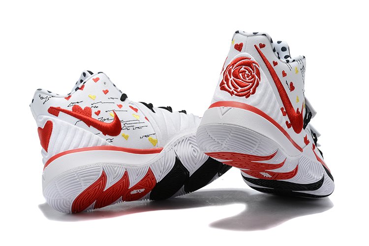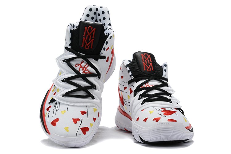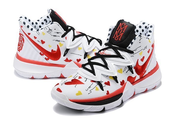 This Sneaker Room x Nike Kyrie 5 collab pays homage to the late mothers of both Irving and Kaufman with a white-based textile upper that’s accented by red and gold hearts embroidered throughout the shoe. Additional details include Irving’s reworked logo on the tongue that reads “MOM” along with polka dot sock liners and a rose and heart detailing on the heel counter.