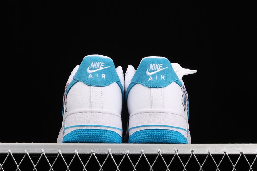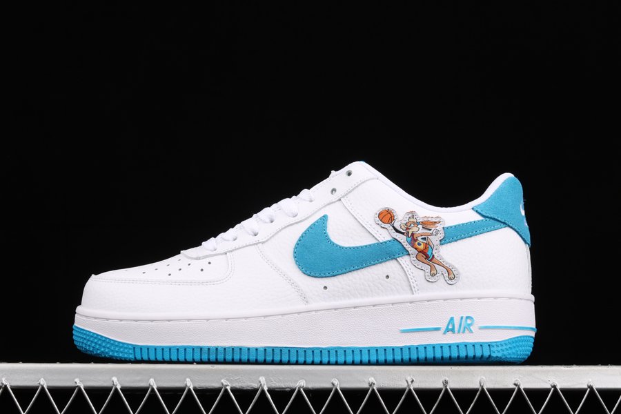 The Nike Air Force 1 Low “Hare” which is inspired by both Bugs and Lola Bunny. This Nike Air Force 1 Low starts off with a White leather construction all over the upper with Light Blue Fury detailing landing on the Swooshes, heel tabs, tongue tags, insoles, the “AIR” on the midsoles, and the rubber outsoles. The highlight of this Uptown is the addition of Bugs and Lola Bunny in the Tune Squad jerseys on the tongue tags and the lateral ankles.