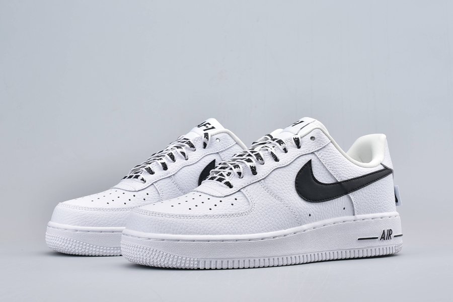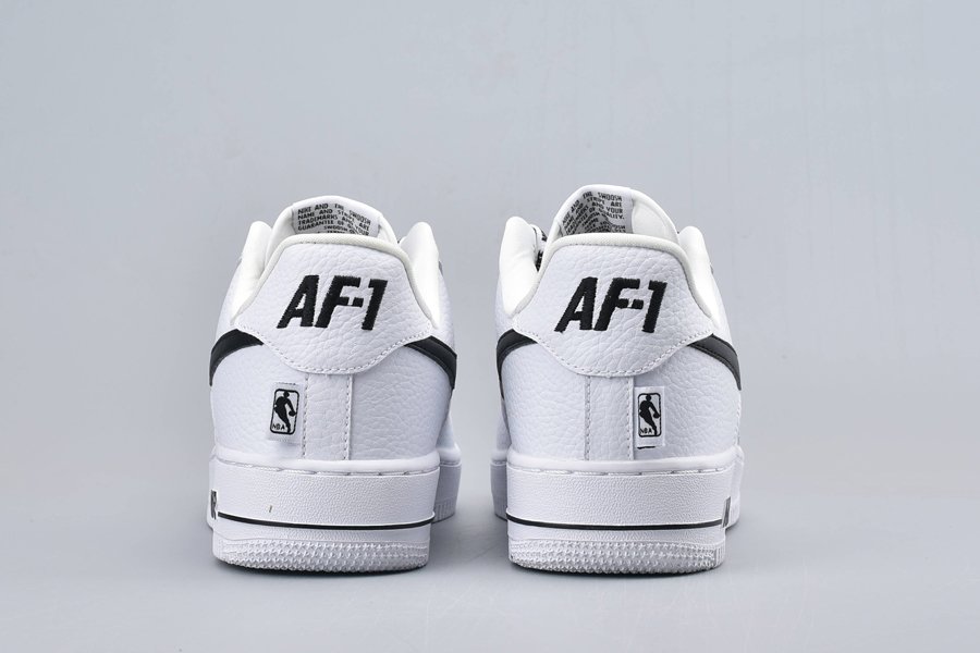 The Nike Air Force 1 ‘Statement Game’ features a white leather upper with a black Nike swoosh and white Air sole unit. The sneaker also comes with new AF-1 branding on the tongue and heel, an NBA logo heel tab, and Nike-printed black and white laces.
