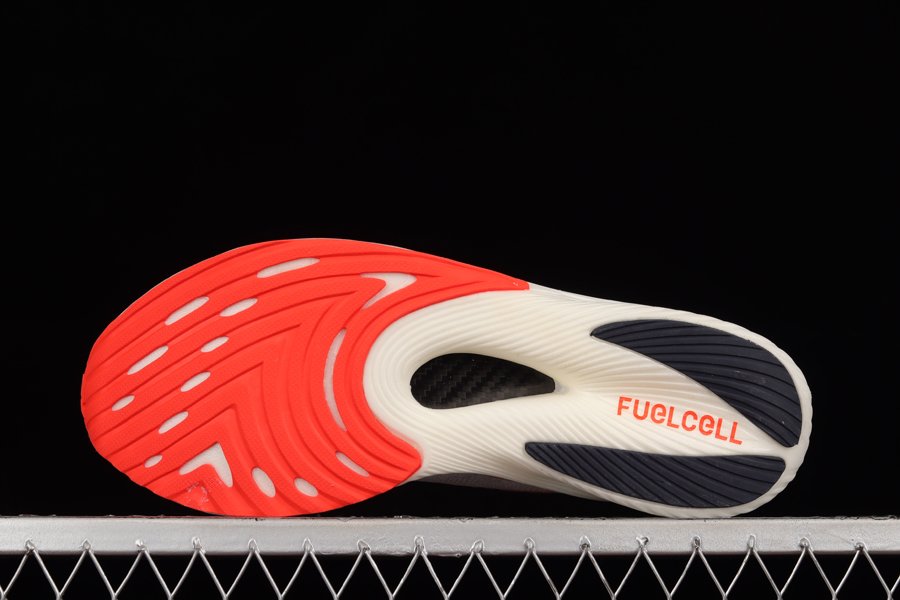 The sneaker also features a range of technical features befitting its performance heritage. These are particuparly notable in the midsole, which is packed with FuelCell technology and a carbon fiber plate for energy eturn, propulsuive transition and a 360-degree functionality.