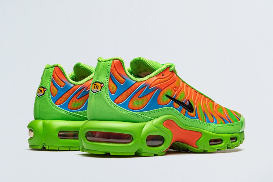 This green variation showcases orange and blue hits across the upper, while the ribbed sections which were originally inspired by palm tree shadows now spell out Supreme. The sneaker showcases the Tuned Air logo on the mesh tongue in its signature yellow hue, while it is also present on the heel panels.