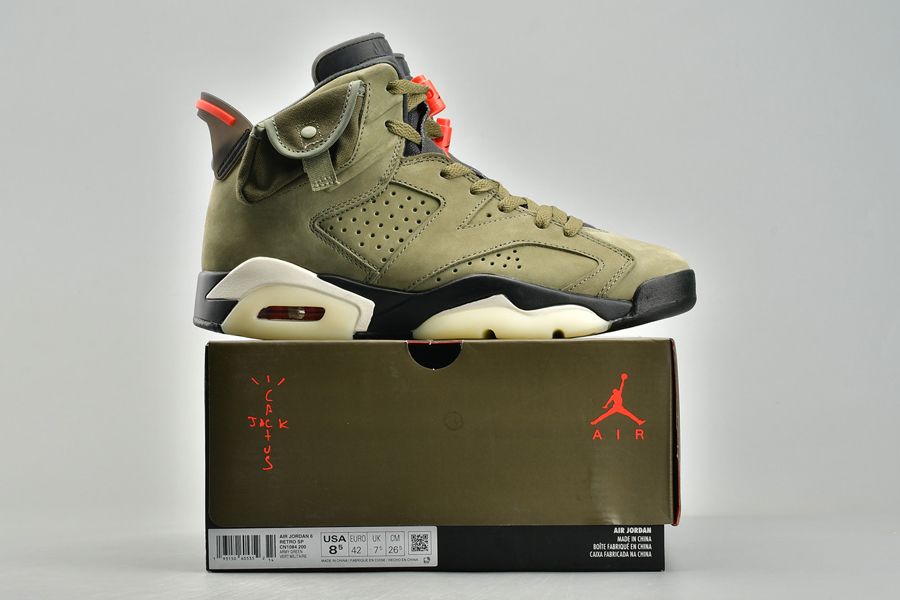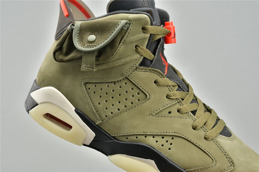 Covered in an official mix of Medium Olive, Black, Sail, and University Red, the sneaker dons an olive nubuck/suede construction to evoke military appeal, while black detailing and red accents all over provide a solid complementing palette. Other details include a side pocket on the collar, semi-translucent heel tabs and Nike Air/Cactus Jack branding throughout. Finally, it’s all adhered atop a sail midsole and translucent outsole.