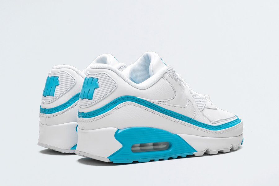 The lace-lock has been updated with ‘UNDEFEATED’ branding in bright blue with the heel featuring the iconic five-strike logo. Rubberised white patches add a contrast of texture to the lace unit, locking the laces in place for a secure fit with a grippy outsole for premium traction. The AM90 is the essential sneaker everyone needs in their rotation and this white and blue Air Max 90 is a must-have for the collection.