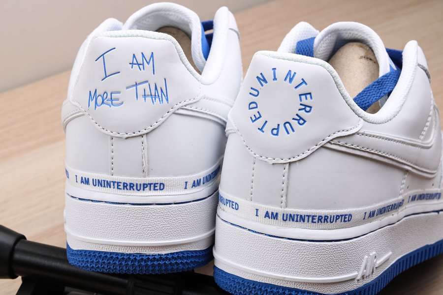 The Uninterrupted x Nike Air Force 1 Low “More Than An Athlete” is a unique collaboration between Maverick Carter’s media company and Nike on the classic low-top design. LeBron James’s close friend and business partner decks his Air Force 1 Low out with a white leather base that appears on the mid-panel and perforated toe with a cream nubuck material covering the lateral panel and heel. A tonal Swoosh is found on each side, while contrasting blue laces and Nike Air Force 1 branding appear on the tongue. Key elements of the design include the phrases “I Am More Than” in blue lettering on the left heel tab and Carter’s “Uninterrupted” branding on the right heel tab. Contrasting “I Am Uninterrupted” in a blue font wraps around the shoe’s mudguard. The side panels are left blank to allow fans to customize their pairs with quotes and sayings unique to their own personal story.