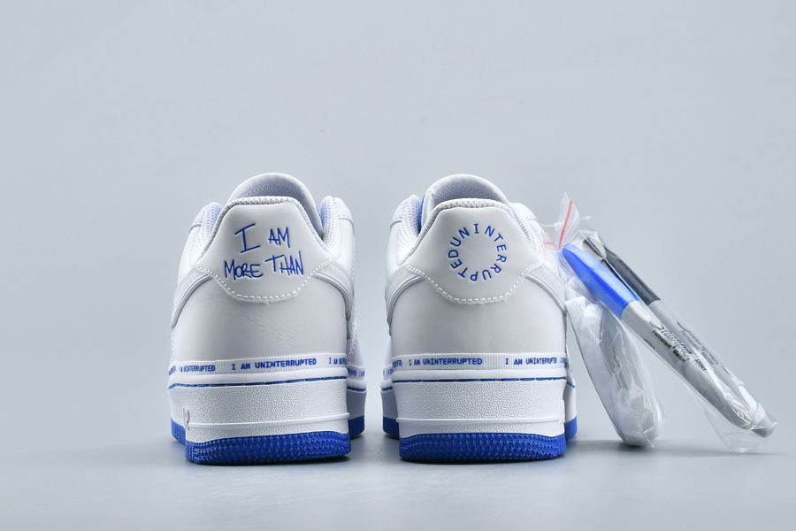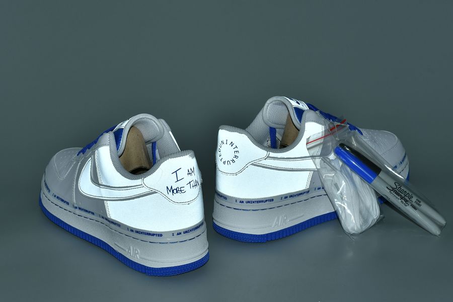 The Uninterrupted x Nike Air Force 1 Low “More Than An Athlete” is a unique collaboration between Maverick Carter’s media company and Nike on the classic low-top design. LeBron James’s close friend and business partner decks his Air Force 1 Low out with a white leather base that appears on the mid-panel and perforated toe with a cream nubuck material covering the lateral panel and heel. A tonal Swoosh is found on each side, while contrasting blue laces and Nike Air Force 1 branding appear on the tongue. Key elements of the design include the phrases “I Am More Than” in blue lettering on the left heel tab and Carter’s “Uninterrupted” branding on the right heel tab. Contrasting “I Am Uninterrupted” in a blue font wraps around the shoe’s mudguard. The side panels are left blank to allow fans to customize their pairs with quotes and sayings unique to their own personal story.