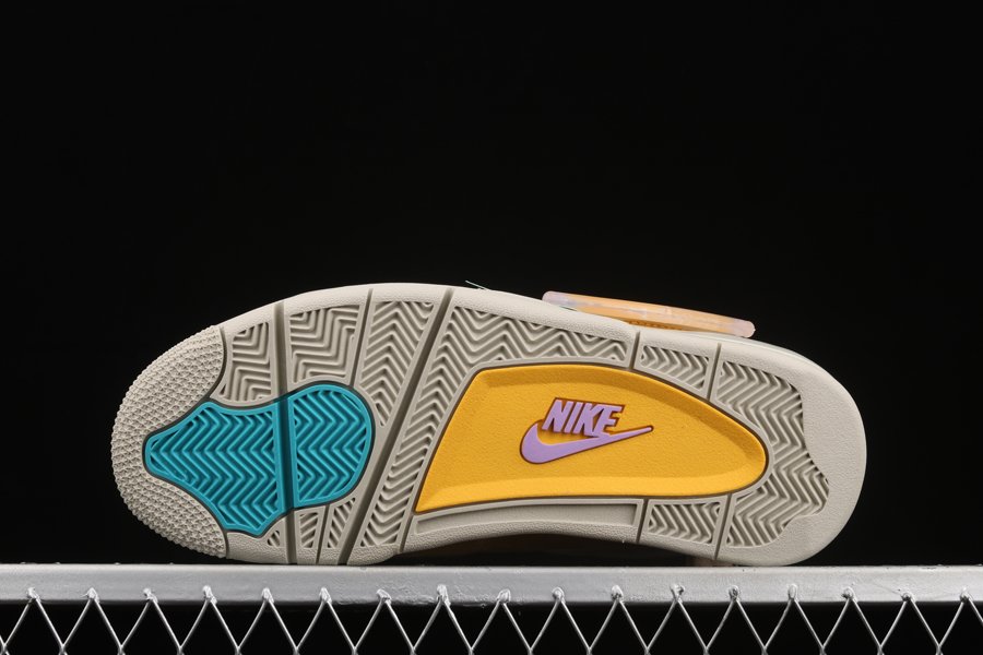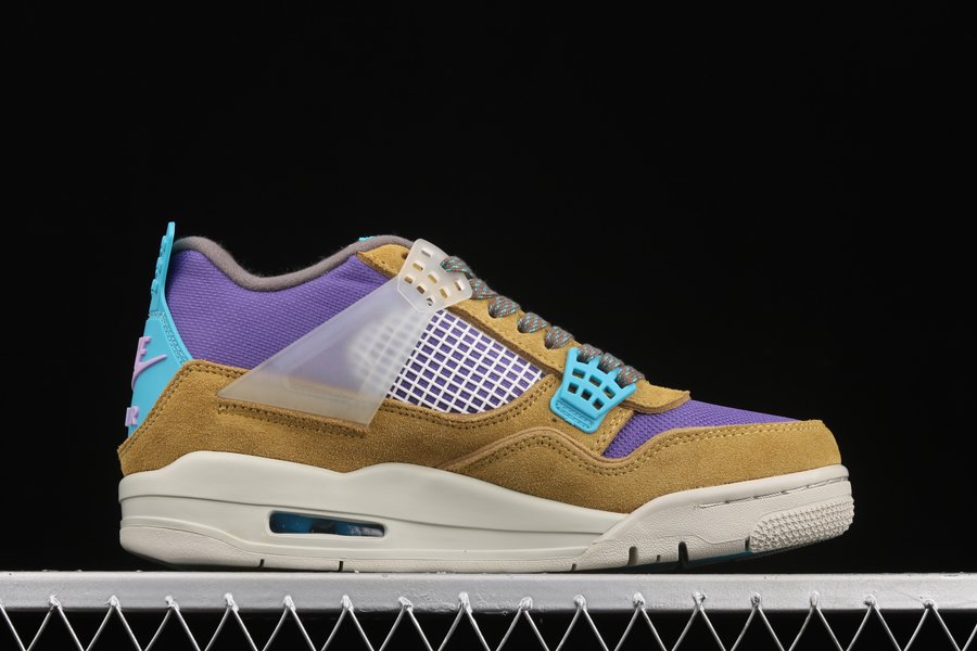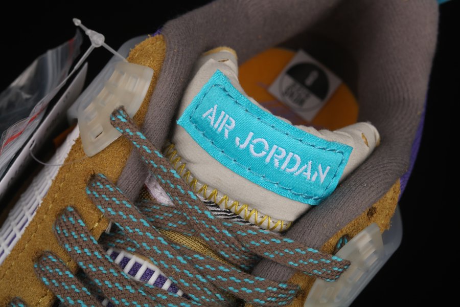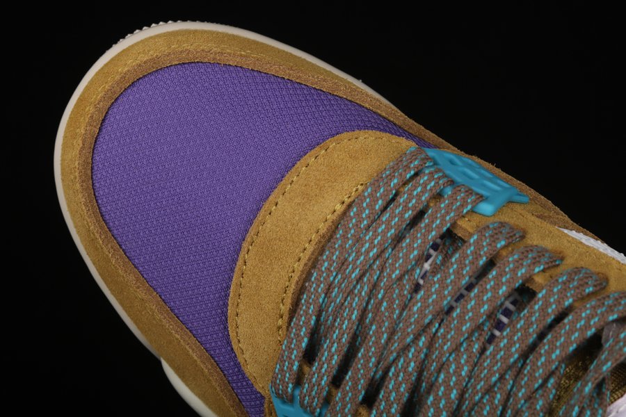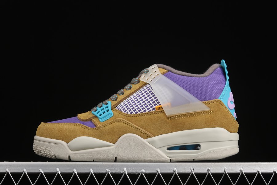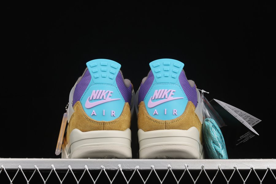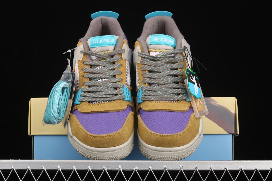Thanks to its unique material construction and unexampled stitched-down tongue, Union LA’s Air Jordan 4 has always garnered a healthy amount of interest and conversation. The “Desert Moss” is sure to further that ethos, as it’s easily Union’s most wildly-colored AJ4 yet. The eponymous “Desert Moss” hue, a rich yellow, is used on the suede mudguards and eyestays. It’s quickly contrasted by “Dark Iris” mesh toeboxes, quarters and collars.