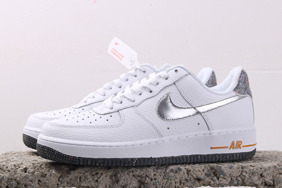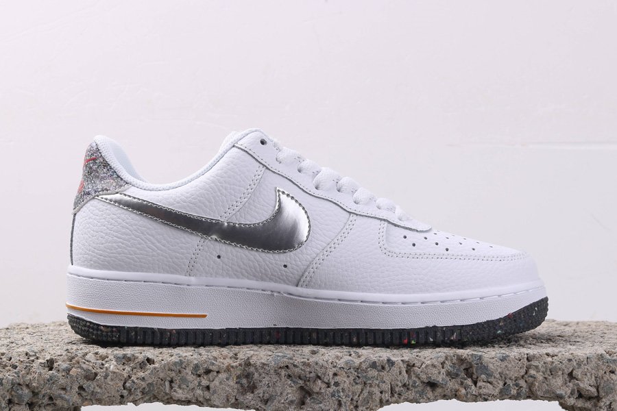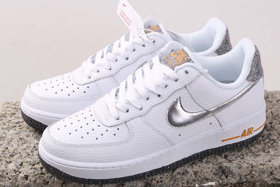 The Nike Air Force 1 Crater “Metallic Silver Laser Orange” is notably part of the brand’s exclusive “Space Hippie” line, which is an exploratory footwear collection constructed with Nike’s own “space junk” that places an emphasis on sustainability. Donning white tumbled leather uppers with bold Silver Swooshes on the sides, pops of orange accents are found on its branded areas. The highlight consists of the model’s Crater Foam material that is composed from Recycled Grind fabrics, and it’s evident on the tongues, heels, and outsoles.