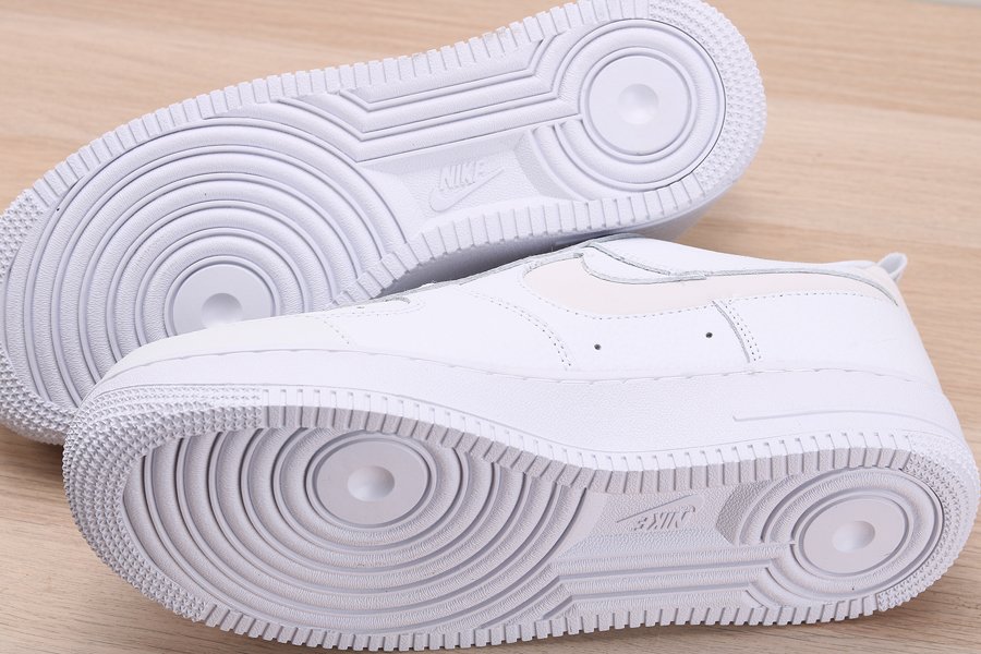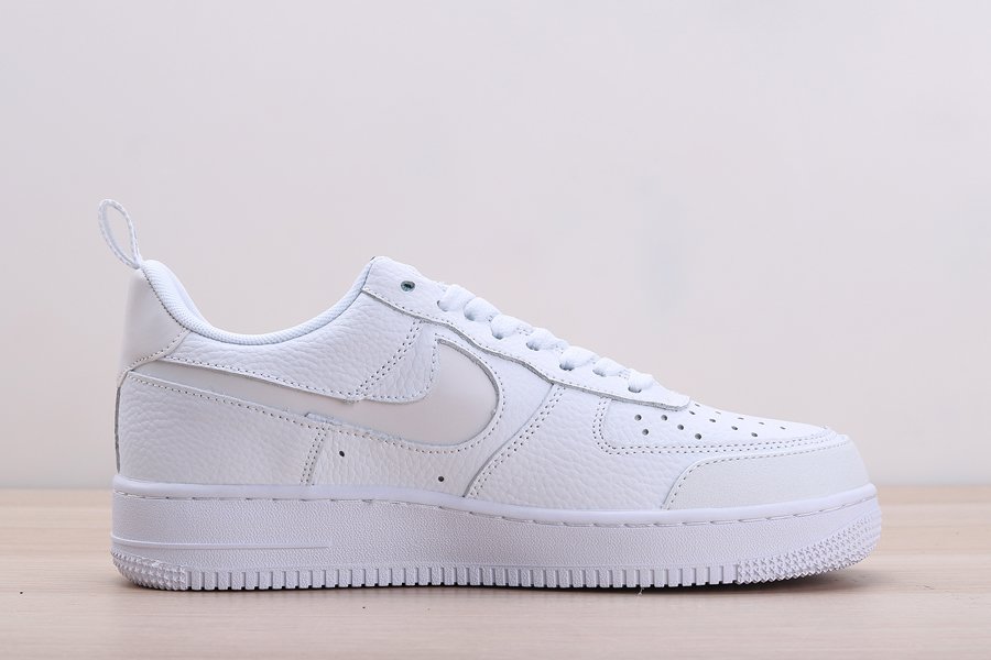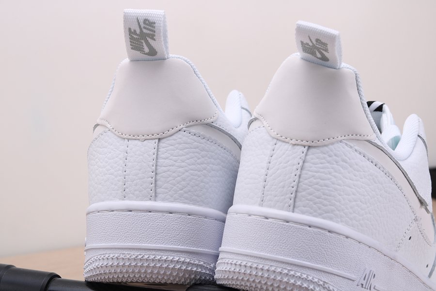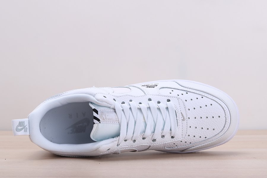 The Nike Air Force 1 is dressed in white tumbled leather and the “Nike Air” lettering and logo are applied to the forefoot. The classic Air Force silhouette also features a slightly new look, with a higher tongue, labels aligned vertically, pull tabs and the lack of branding on the heel. However, the most striking feature is the 3M Reflective on the Swoosh and heel.