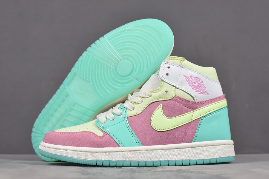 Womens Air Jordan 1 “Easter Egg” Sail/Hyper Turquoise-Barely Volt