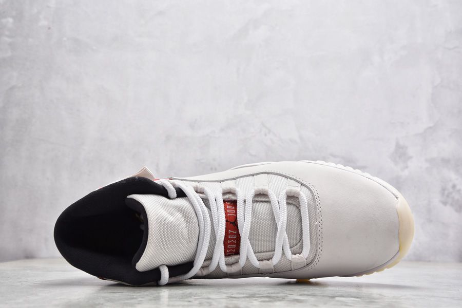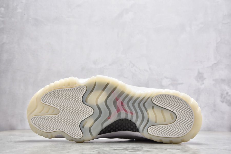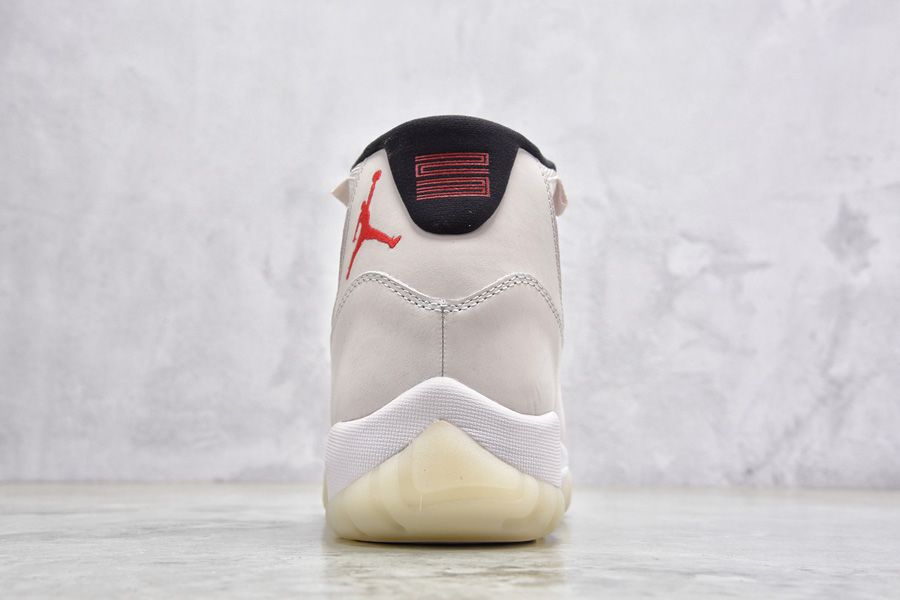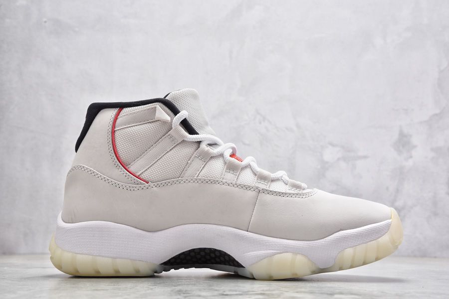 This Girls Air Jordan 11 sporting a “Platinum Tint” upper alongside a red Jumpman. The solid Platinum Tint upper sits on a translucent outsole for a classic finish.