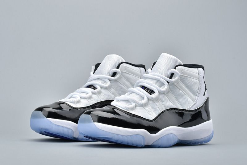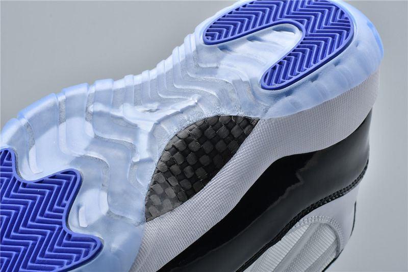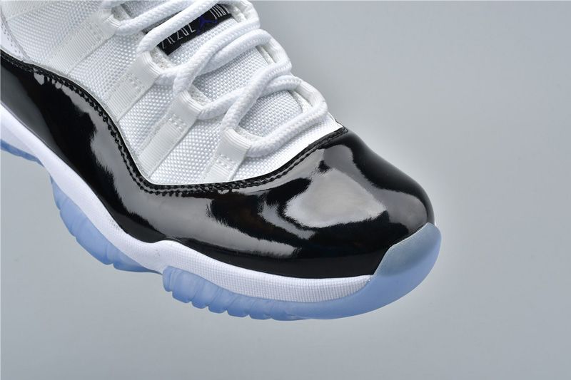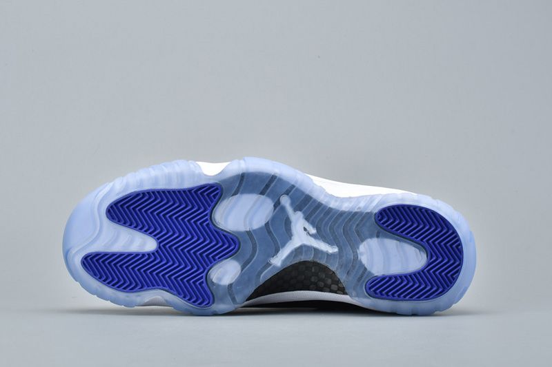 This New Air Jordan 11 Concord 2018 features a White mesh base, with White leather overlays, with Black mudguards, an all-White midsole and an Icy translucent outsole. Other details include the Concord featured on the tongue area Jumpman and outsole of the shoe and a Black Jumpman logo stitched by the ankle.