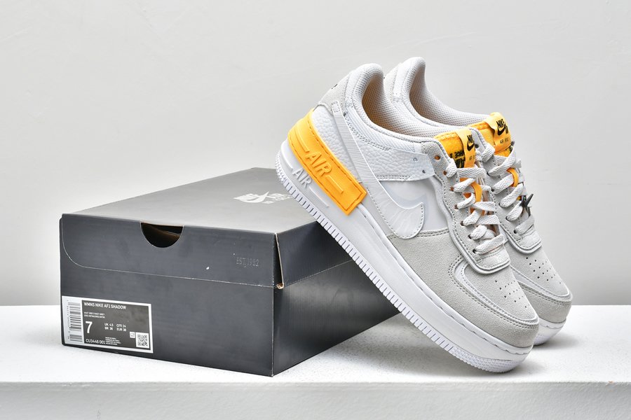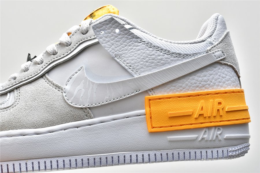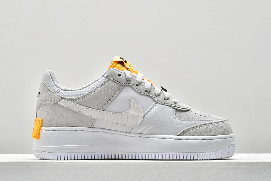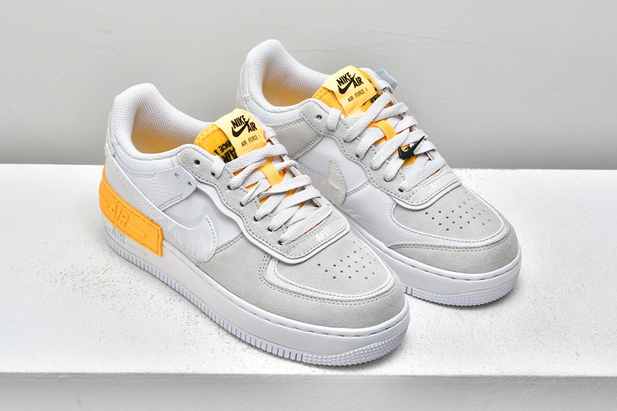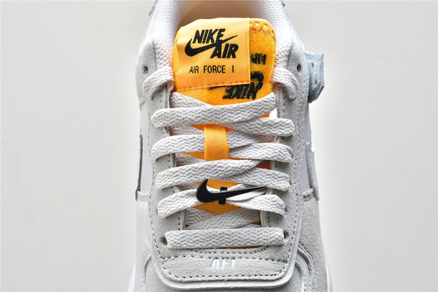 This beige and orange Air Force 1 Shadow arrives with small updated details including a black Swoosh lace lock attached to one of the shoes. Additional black detailing also appears across the heel panels with an embroidered vintage ‘nike’ logo that sits above the doubled-up midsole overlay.