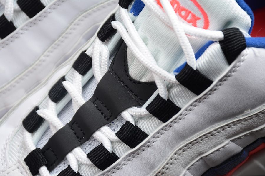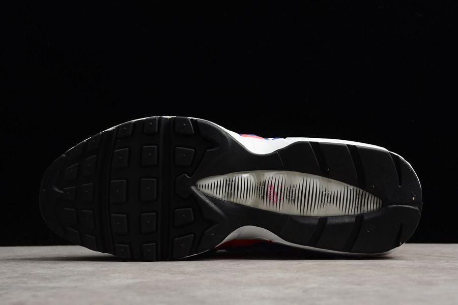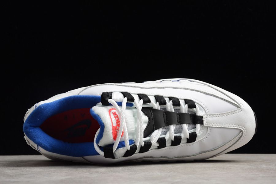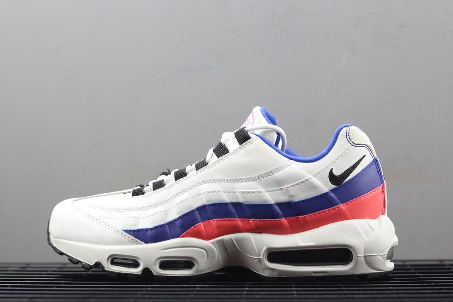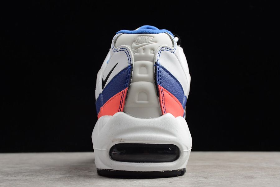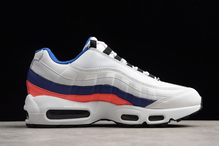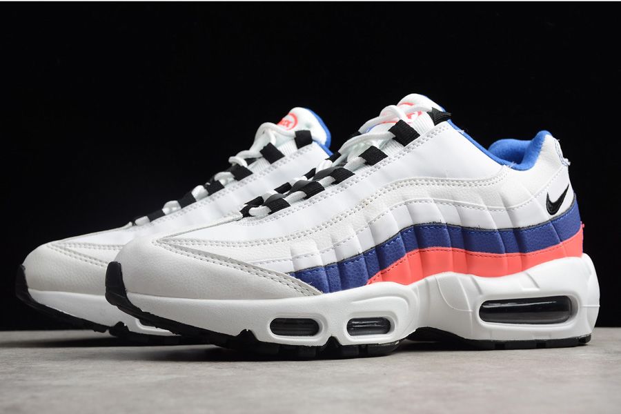 The runner’s upper is mostly colored in white, while the ultramarine hue paired with solar red accents are seen lower section of the side panels that flows to the heel, while additional hits are seen on the lining and branding on the tongue. A white midsole featuring the Air Max cushioning, and black rubber outsole finally completes the design altogether.
