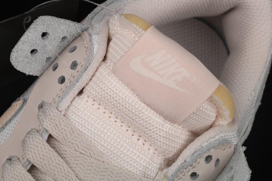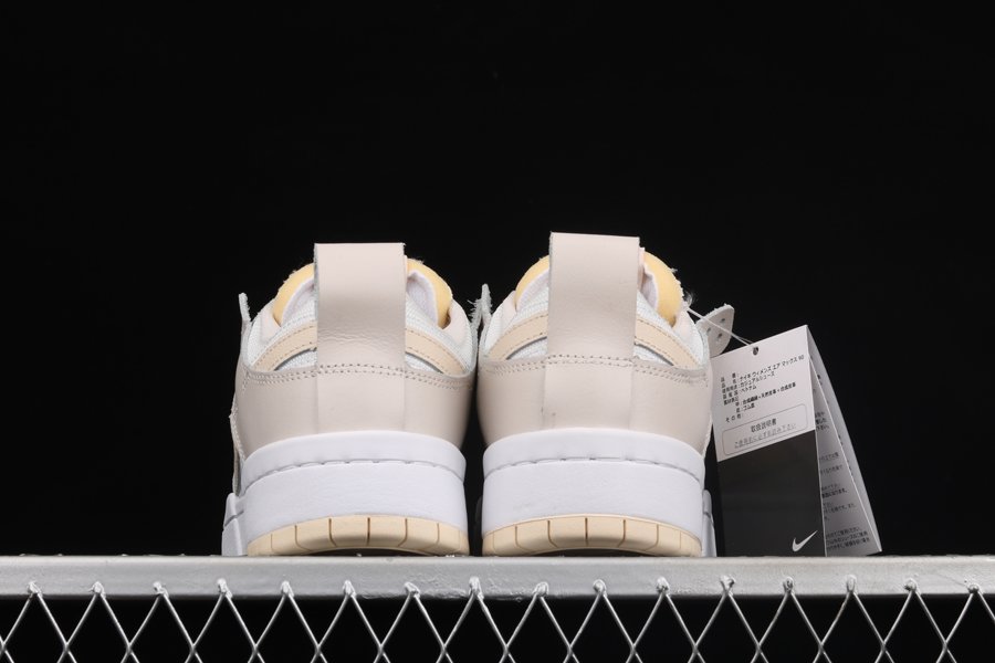 This latest iteration of the Dunk Low Disrupt sees a clean white tightly-woven mesh construction across the base, that is wrapped with sail-hued leather panels. Across the sides, a softened shade of yellow adorns Nike’s Swoosh logo and the exaggerated design is complete with a thick white midsole, open vintage foam tongue, a pull heel tab, and a rubber outsole.