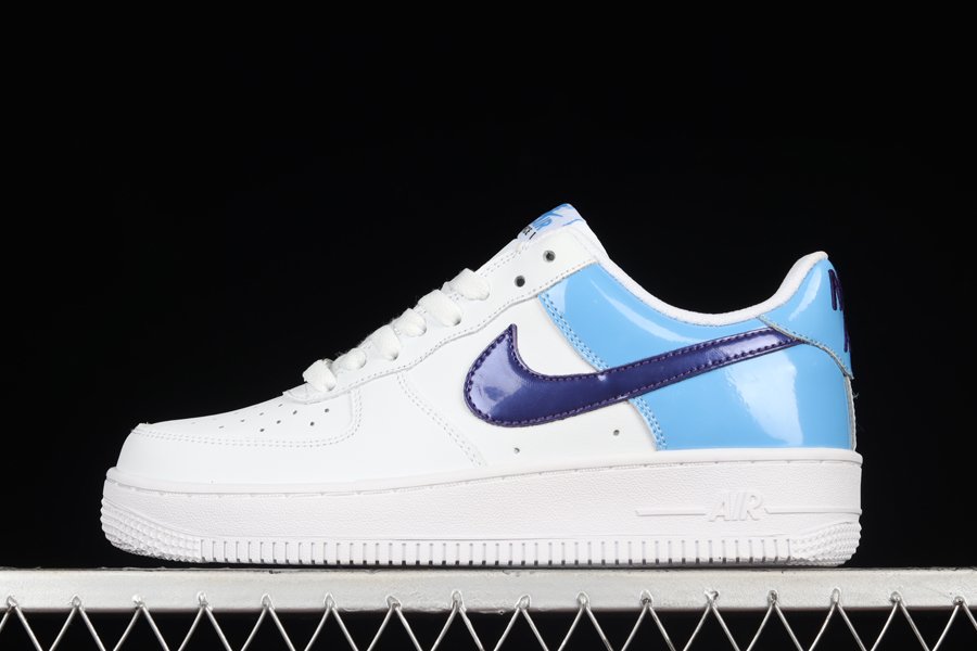 DJ9942-400 Nike Air Force 1 Low Blue Patent Swooshes White